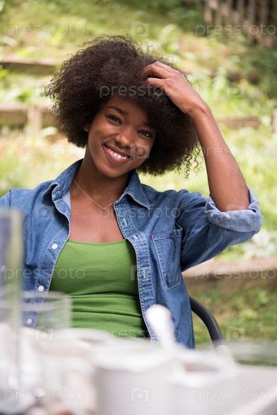 Портрет красивой счастливого афро-американской девушки
