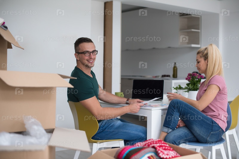 Молодая пара в новом доме