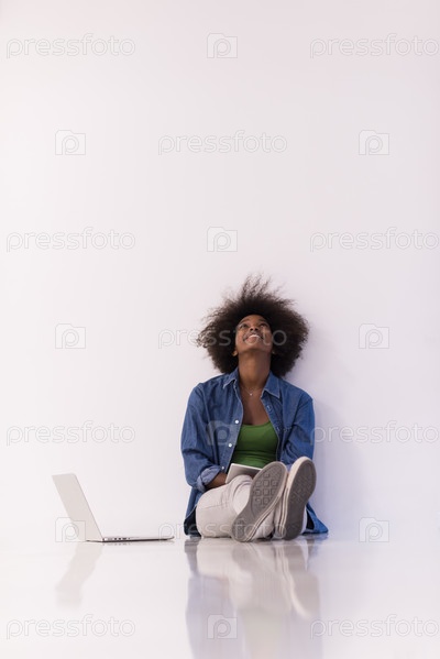 Афроамериканка дома в кресле с ноутбуком