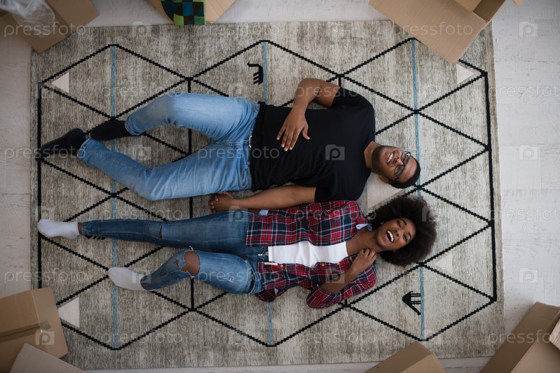 Вид сверху привлекательной молодой афро-американской пары
