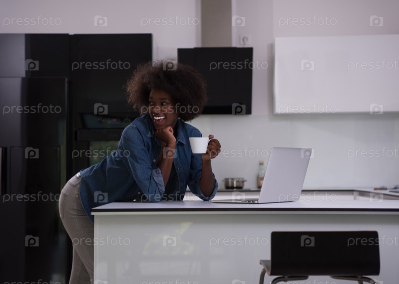 Черная женщина в современной кухне