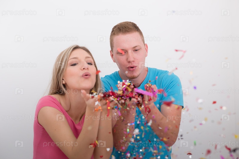 Романтичная молодая пара с конфетти