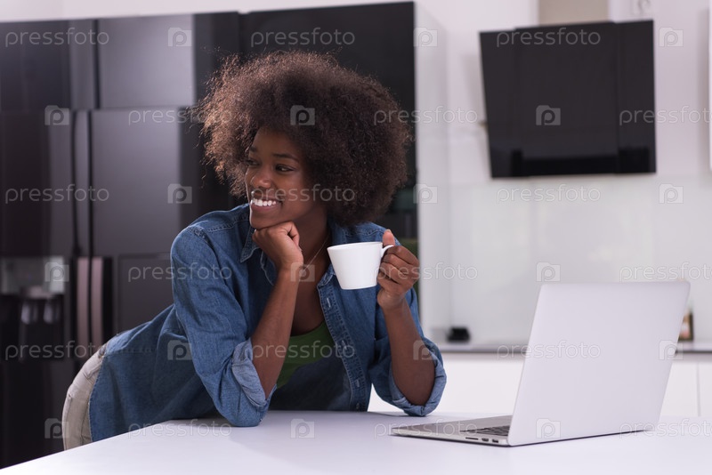 Черная женщина в современной кухне