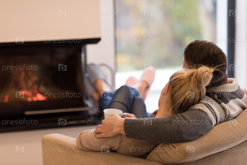 Молодая пара у камина
