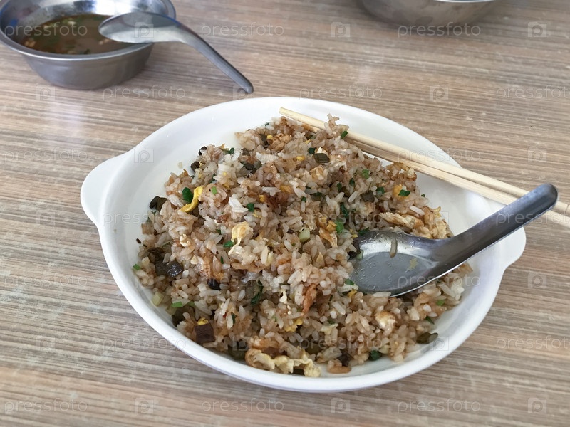 Блюдо с рисом с яичницей