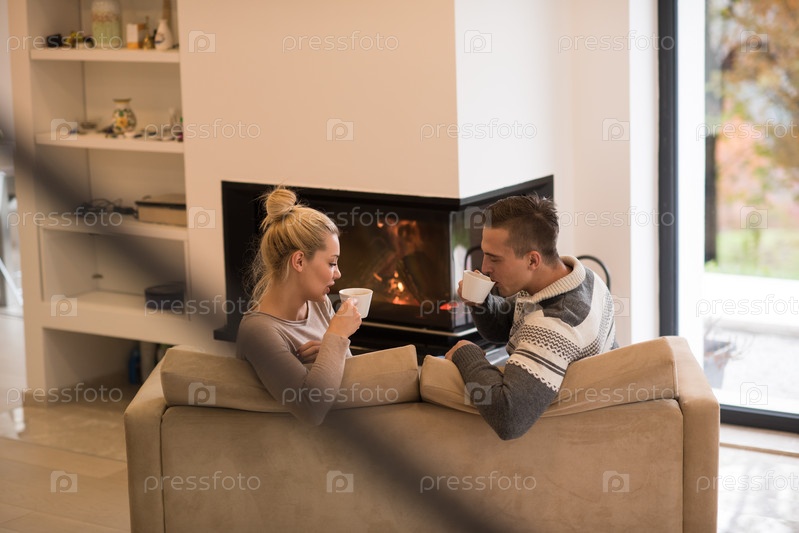 Молодая пара у камина
