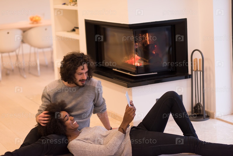 Многонациональная пара на полу