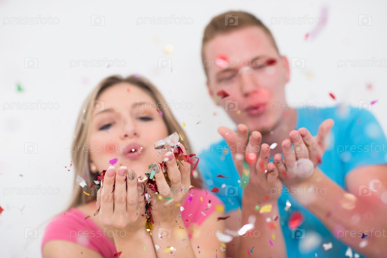 Романтичная молодая пара с конфетти