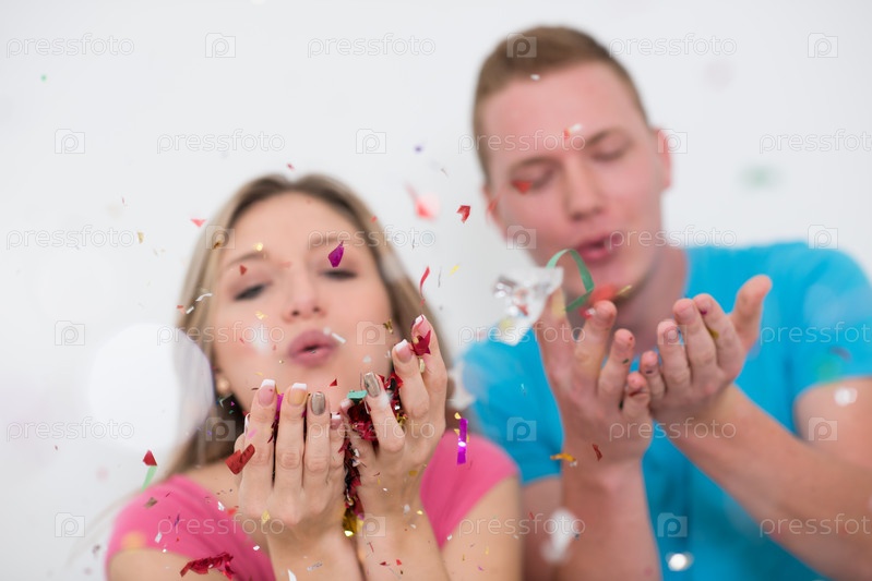 Романтичная молодая пара с конфетти