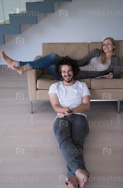 Молодая пара отдыхает в гостиной