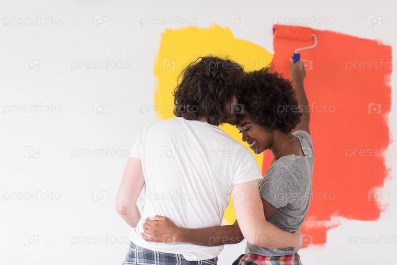 Многонациональная пара красит стену