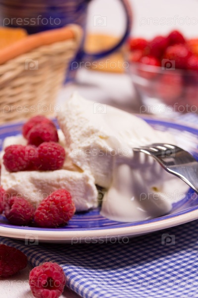 Творожный десерт со свежей малиной