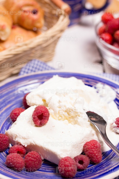 Творожный десерт со свежей малиной
