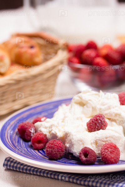 Творожный десерт со свежей малиной