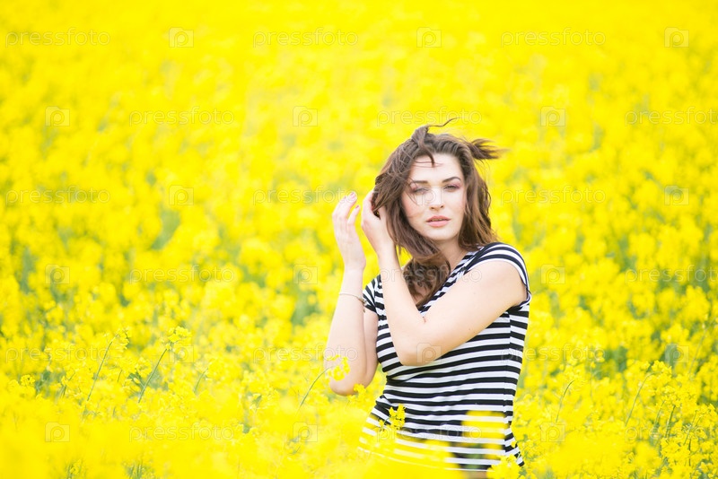 Портрет молодой девушки в поле рапса