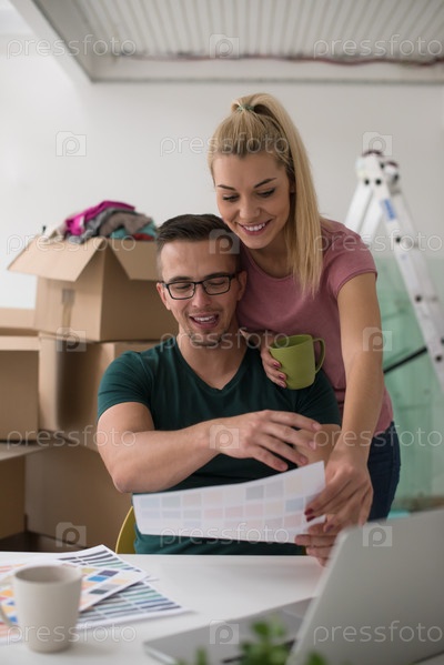 Счастливая молодая пара в новом доме