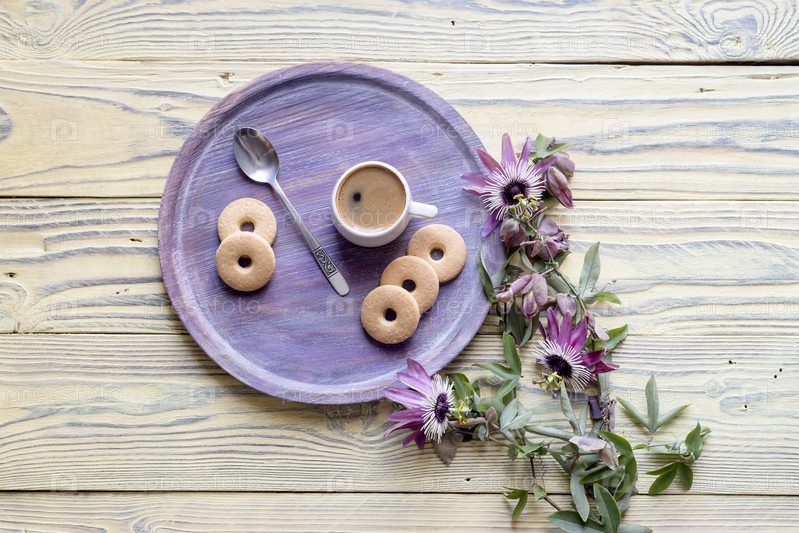 Кофе, печенье и цветы
