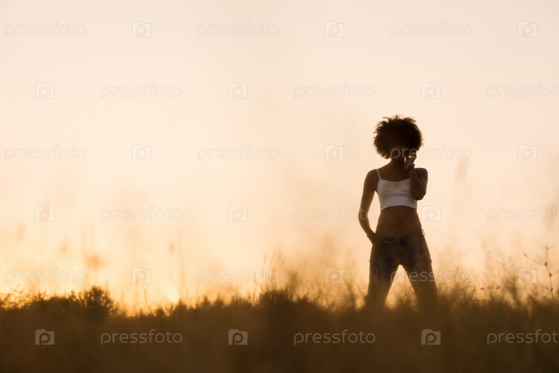 Молодая чернокожая женщина в природе