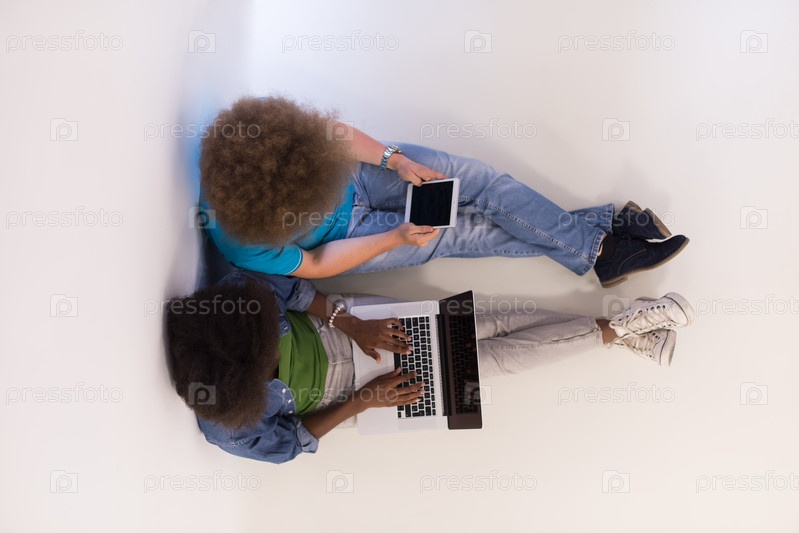 Многонациональная пара сидит на полу