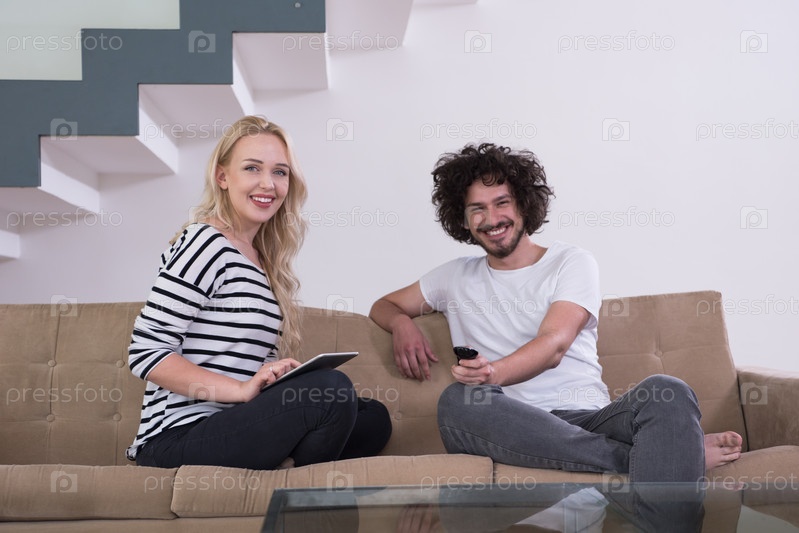 Пара отдыхает в гостиной