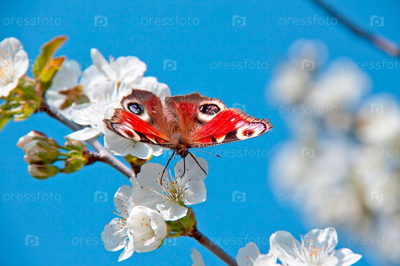 Весенняя ветка яблони с бабочкой