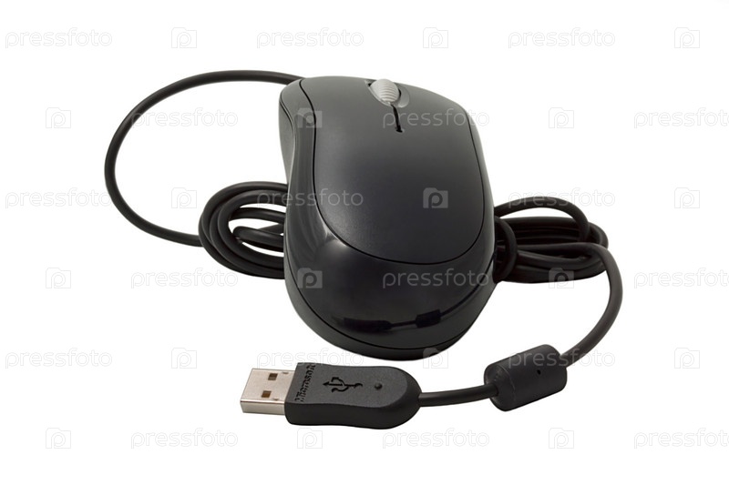 Компьютерная мышь с разъемом USB на белом фоне