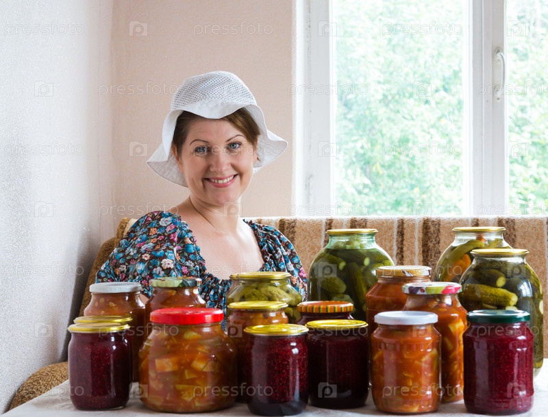 Женщина с домашними заготовками в банках