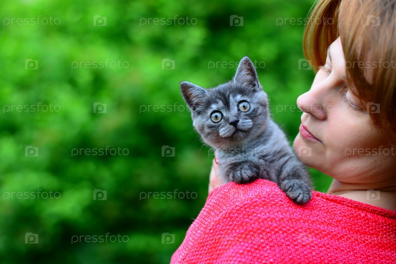 Женщина с очаровательным котенком