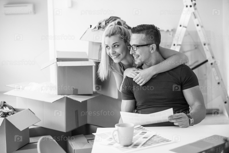 Молодая пара в новом доме