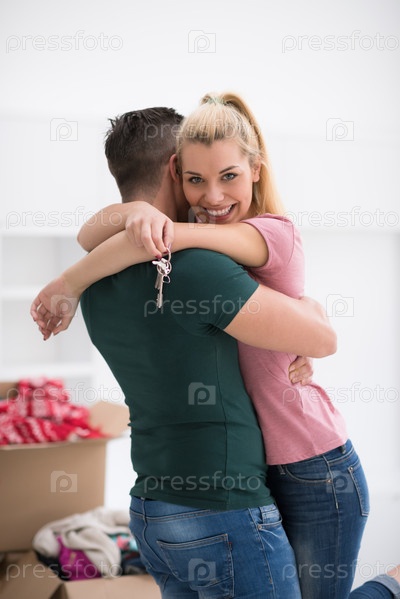 Счастливая молодая пара в новом доме