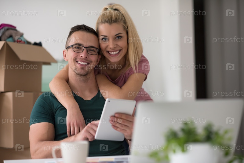 Молодая пара в новом доме