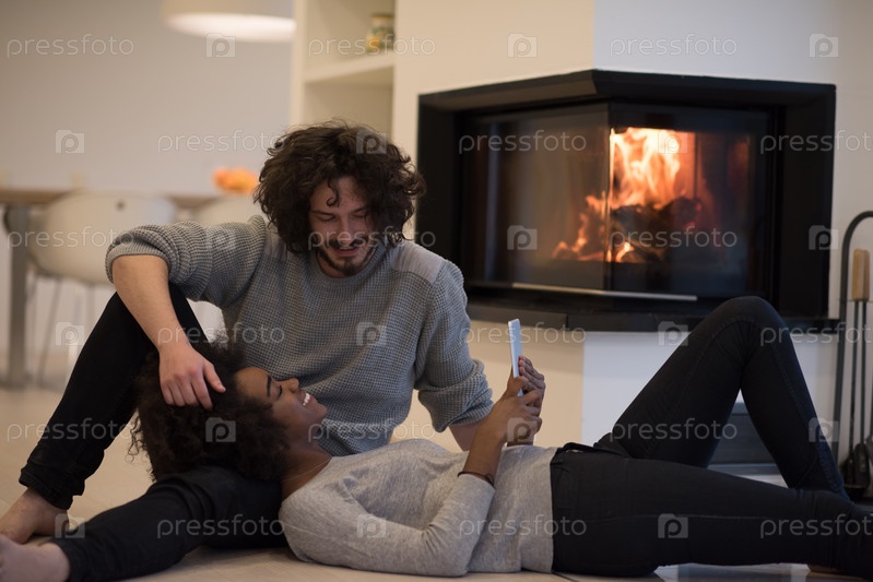 Многонациональная пара у камина
