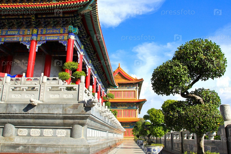 Традиционный китайский храм в Ват Ленг-Ной-Йи в Нетхабури, Таиланд