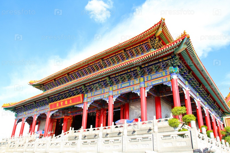 Традиционный китайский храм в Ват Ленг-Ной-Йи в Нетхабури, Таиланд