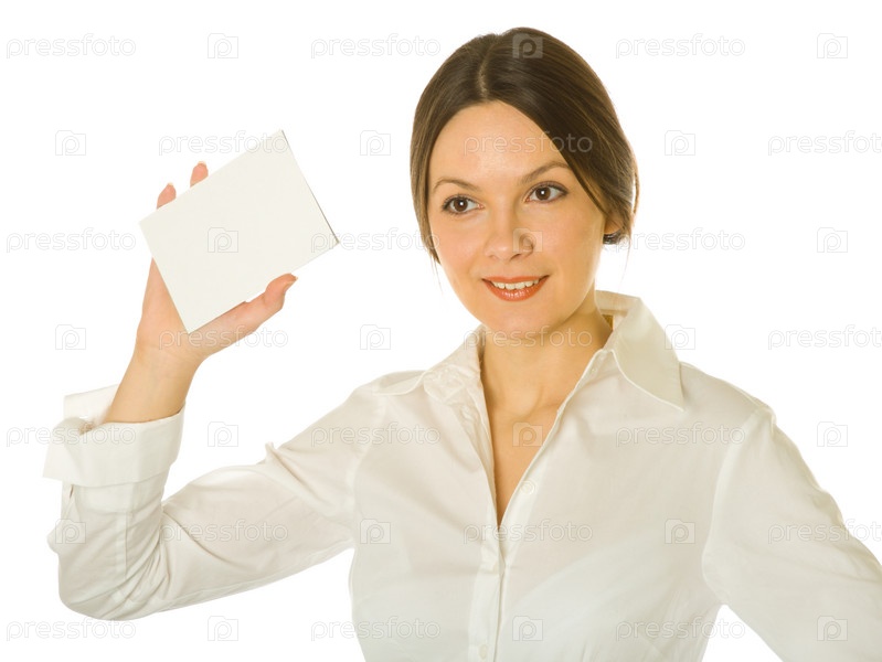 Женщина с карточкой для текстовых сообщений