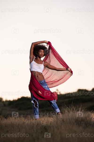 Черная девушка танцует на лугу
