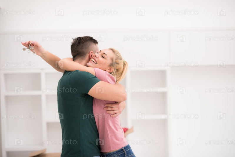 Счастливая молодая пара в новом доме