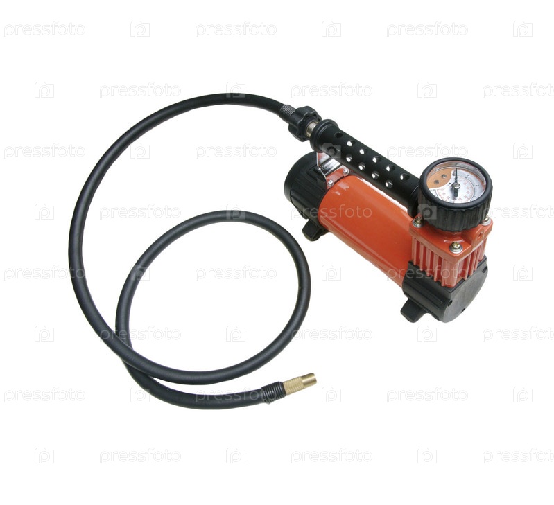 Воздушный компрессор с манометром, изолированный на белом фоне