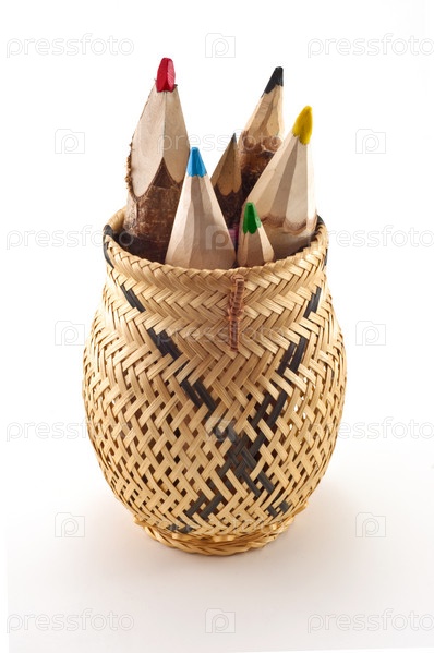 Большие деревянные карандаши в берестяной вазе
