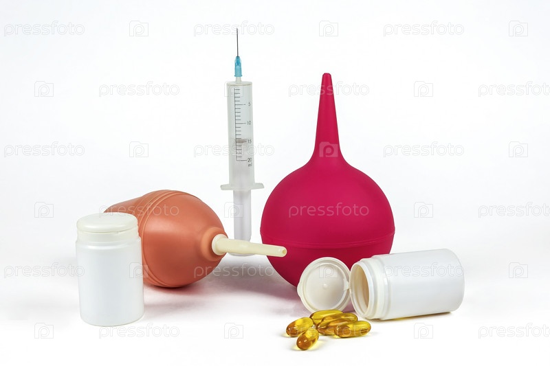 Медицинские шприцы, груши и таблетки