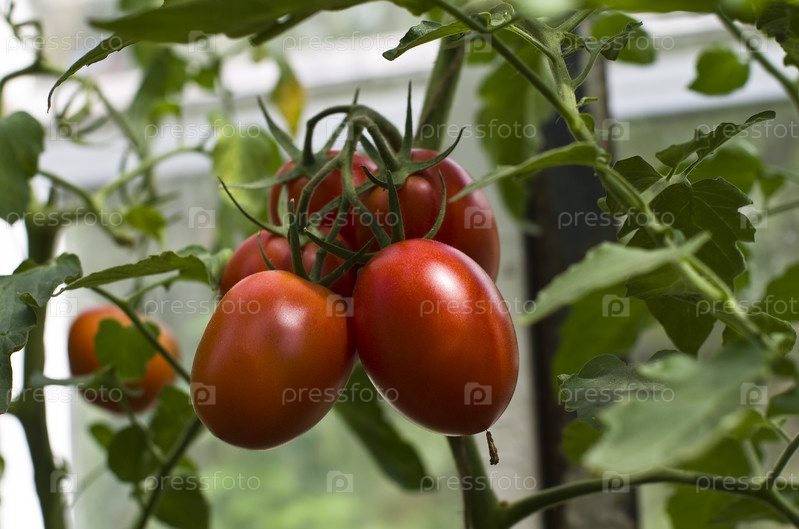 Спелые помидоры на кусте в теплице