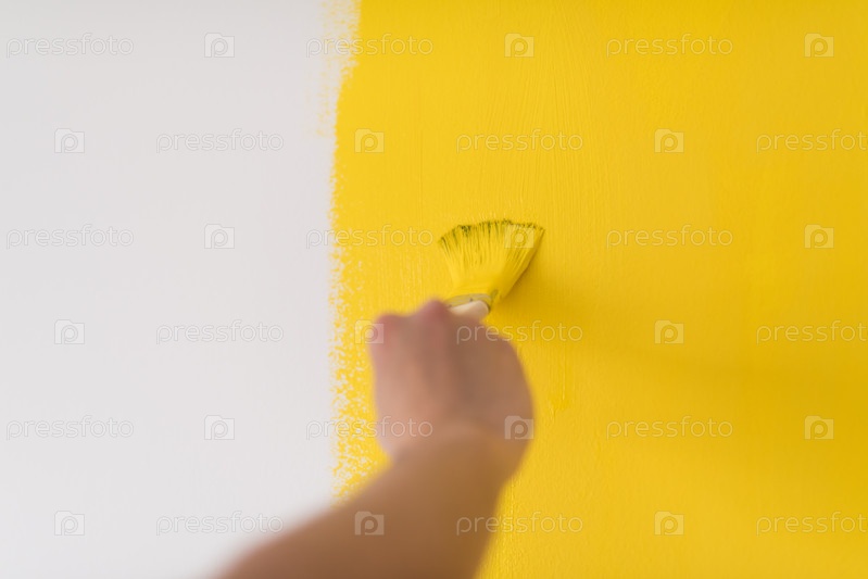 Женщина красит стену