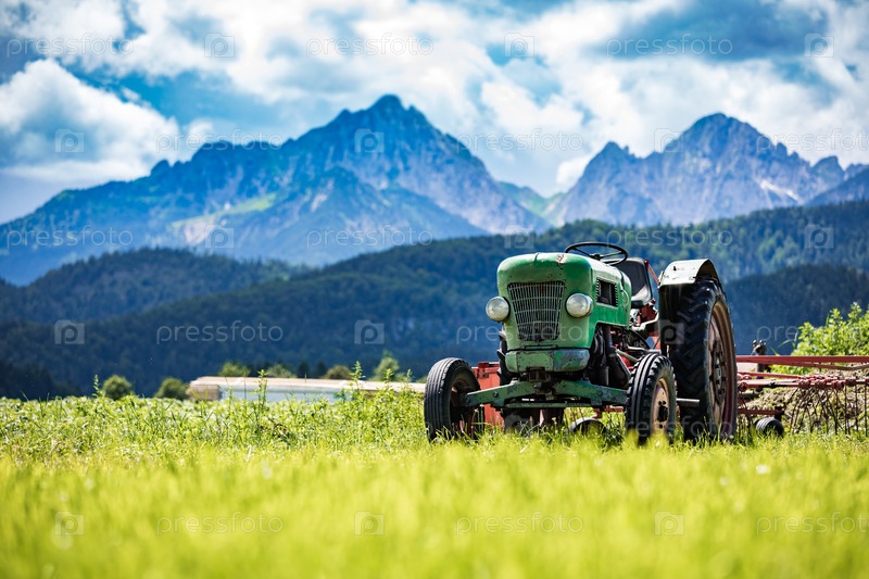 Старый трактор в альпийских лугах