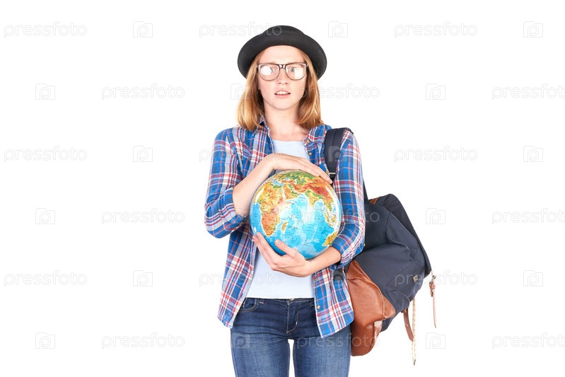 Школьница с глобусом