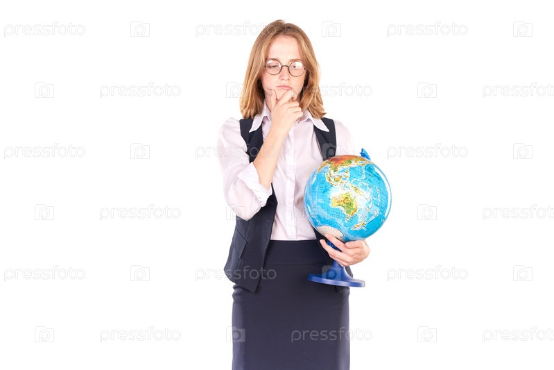 Школьница с глобусом