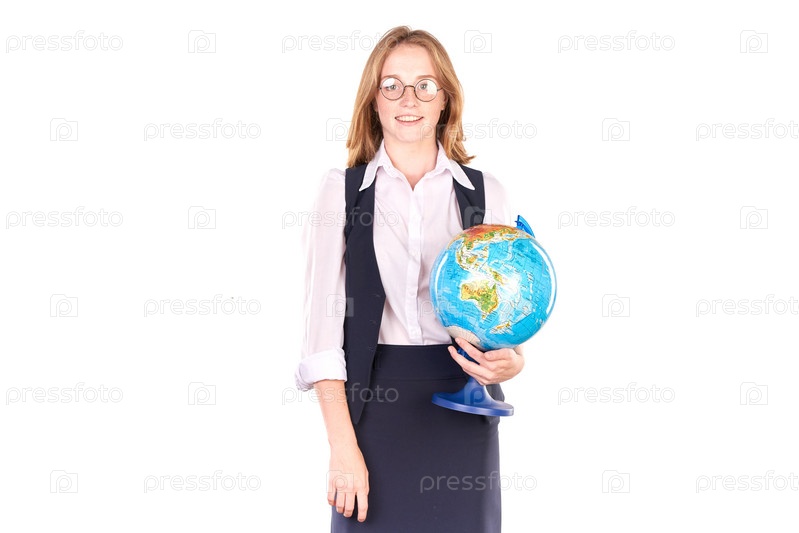 Школьница с глобусом