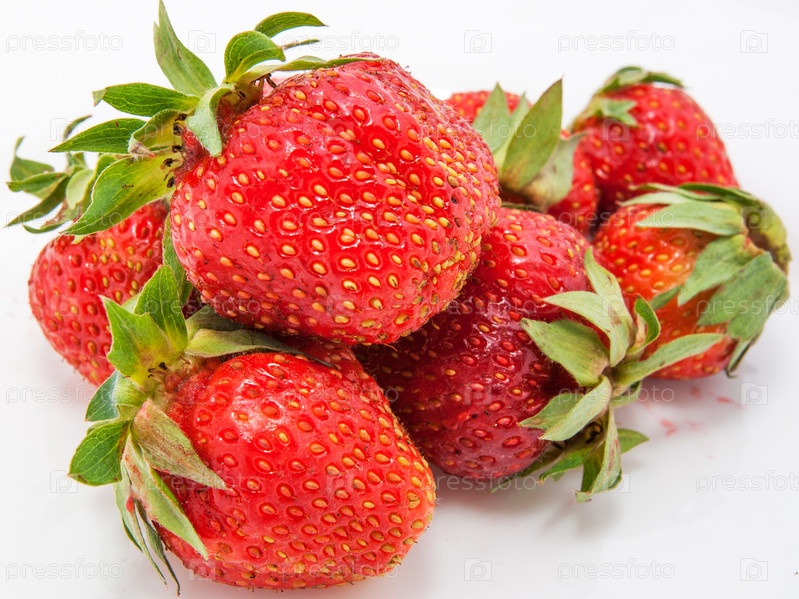 Несколько спелых ягод клубники на белом фоне