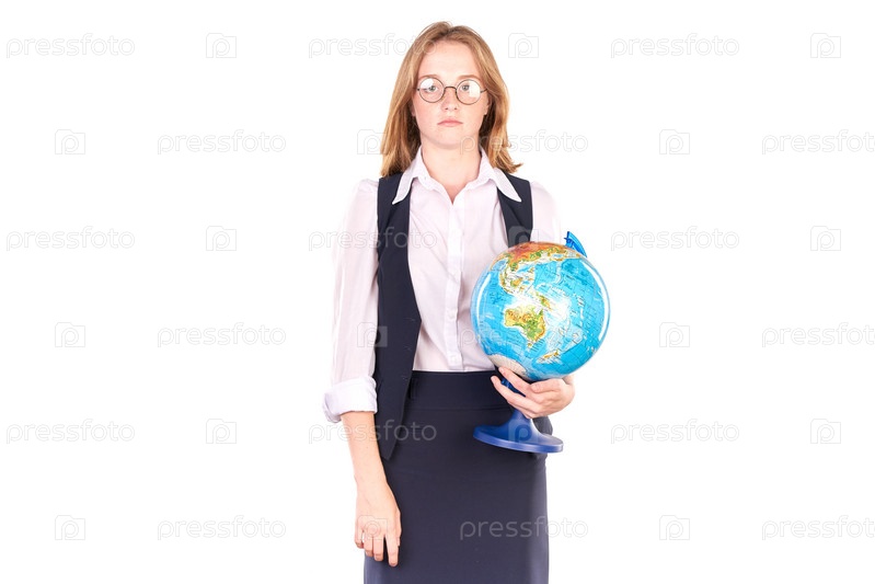 Школьница с глобусом