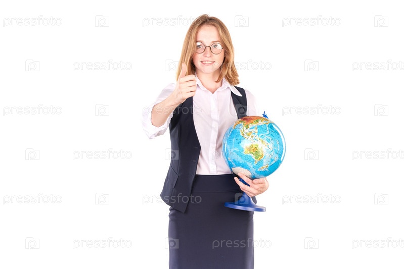 Школьница с глобусом