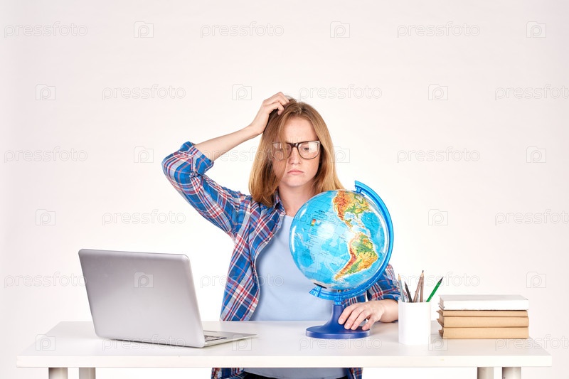 Школьница с глобусом